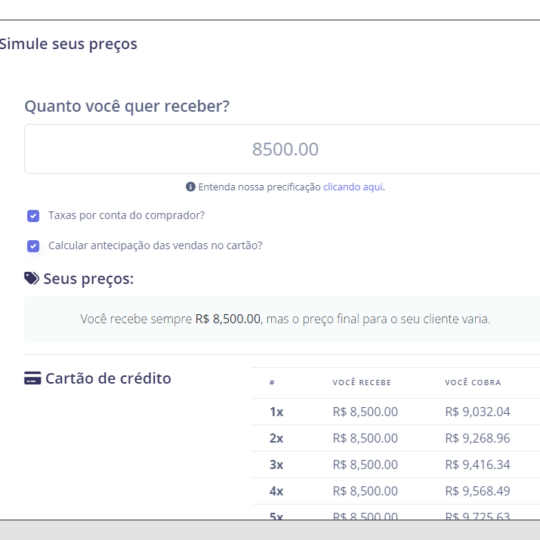 Simular preços em múltiplos métodos de pagamento